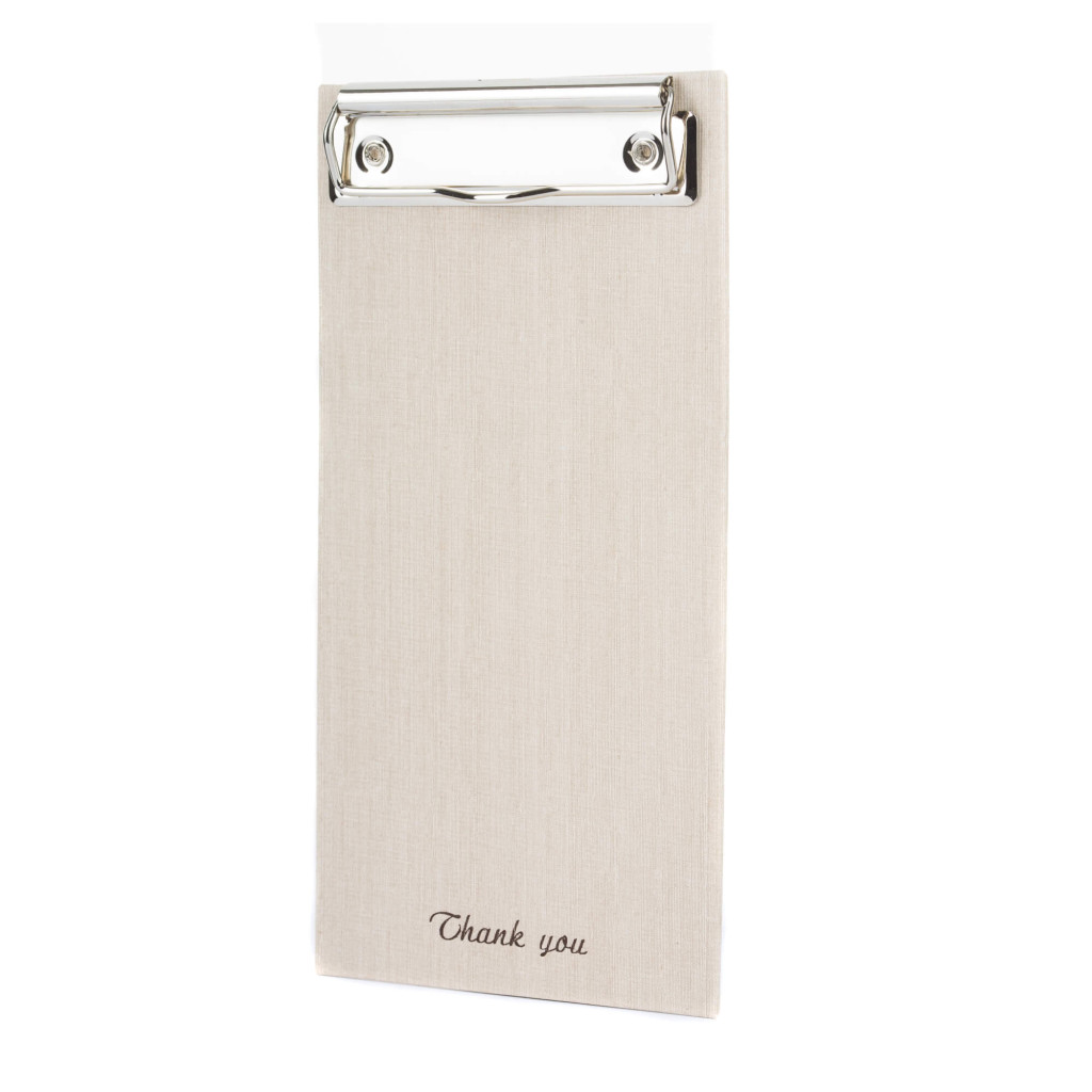 CSIPESZES SZÁMLATARTÓ TÁBLA "THANK YOU" FELIRATTAL, BÉZS, MŰBŐR BORÍTÁS