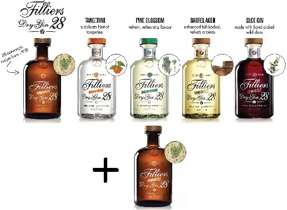 Filliers 28 Gin PACK 5+1 *0,5LSzármazási hely: Belgium- 1 +1FREE Original Dry Gin 0,5l 46% (száraz karakterű gin, boróka fűszeres jegyeivel és frissítő citrusos aromákkal kiegészítve)- 1 * Pine Blossom Gin 0,5l 42,6% (gazdag és földes aromájú gin,intenzíven frissítő, kissé sós, mégis édeskés ízvilág jellemzia vaníliának köszönhetően)- 1 * Sloe Gin 0,5l 26% (édeskés és fűszeres gin - cseresznyés ízvilág és szilvás aromák jellemzik, klasszikus borókával, némi fügévelés fahéjjal)- 1 * Barrel Aged Gin 0,5l 43,7% (erőteljes gin, tölgy és szárított fűszernövények finom jegyeivel, egy csipetnyi vanília, illatát az édesgyökér és a virágok teszik teljessé)- 1 * Tangerine 2014 Gin 0,5l 43,7% (a mandarin és különböző citrusos jegyek dominálnak)